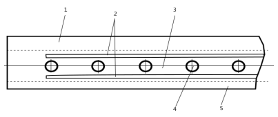 1-top cover; 2-rip-stop layer; 3-core; 4-steel cord; 5-bottom cover
