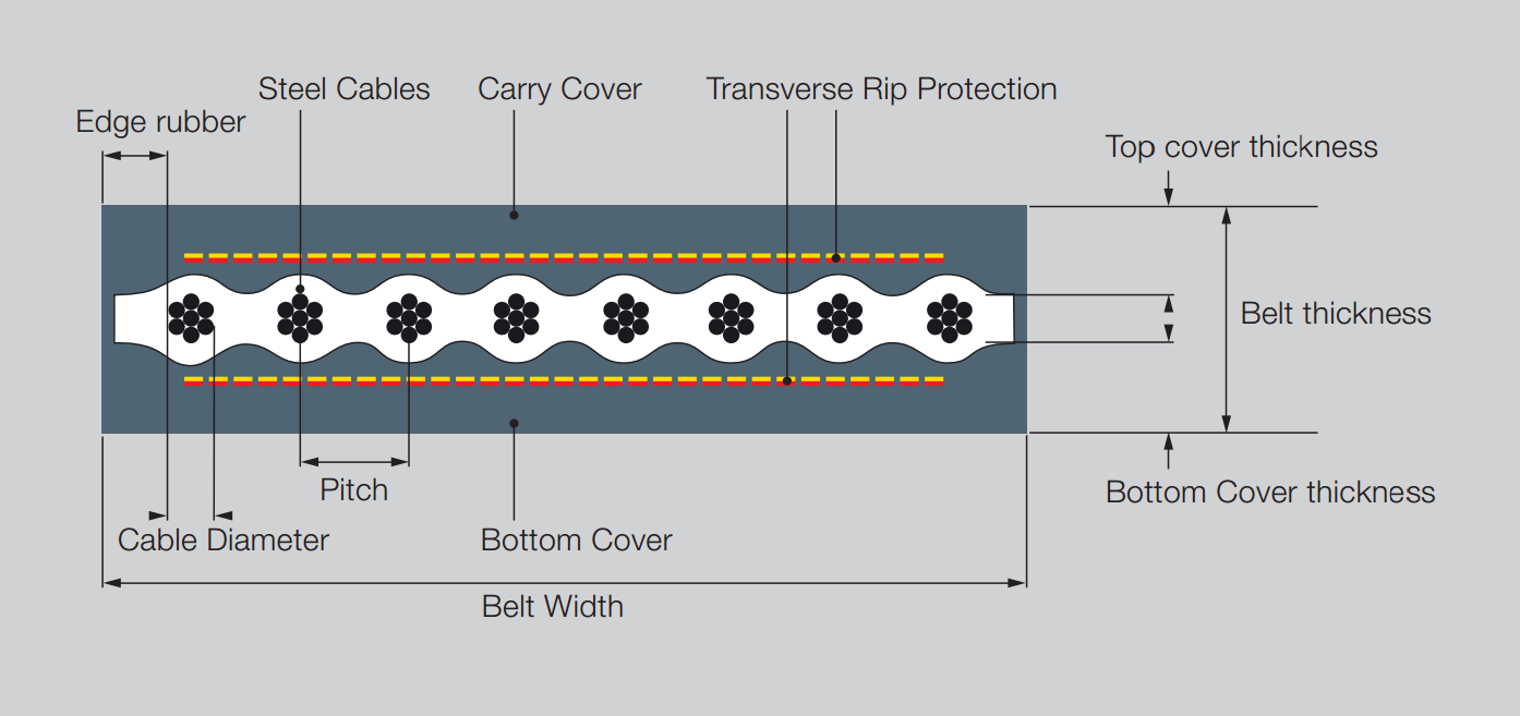 Double-sided anti-tear steel cord belt lifting structure diagram.